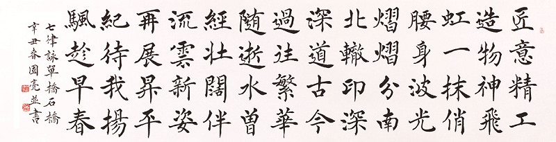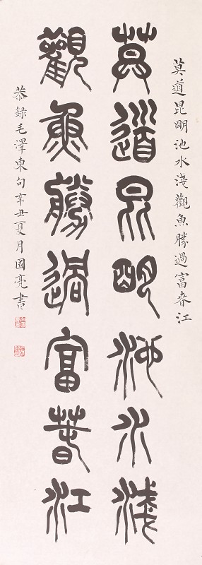 因而,国亮在全面整合传统经典资源的基础上,为自身个性的发挥寻找到一个恰当的定位,即:尚古韵而抒灵性,觅时风而入传统,存法度而求韵致。这一艺术思想也体现于他的书法作品中。