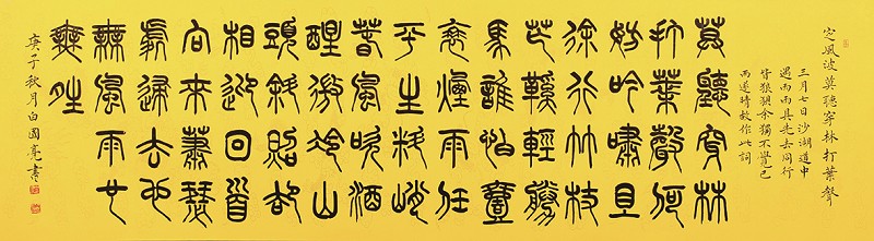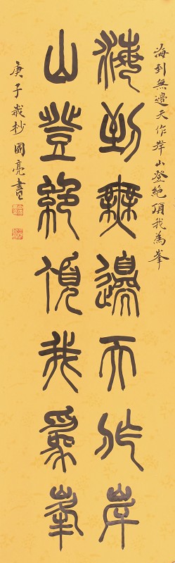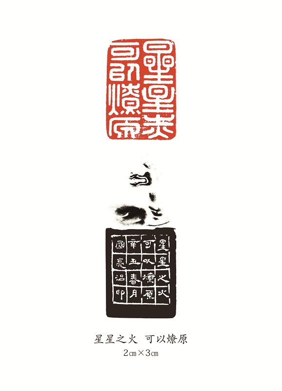 为艺者历来尚品位。国亮作品动人之处即在于此。看得出,国亮的篆刻,是于秦风汉韵的灵山宝藏中浸馈陶染而出,并聆听着历代大师金石交响的乐章,且琢且磨,迈着坚实的步履一路走来的。