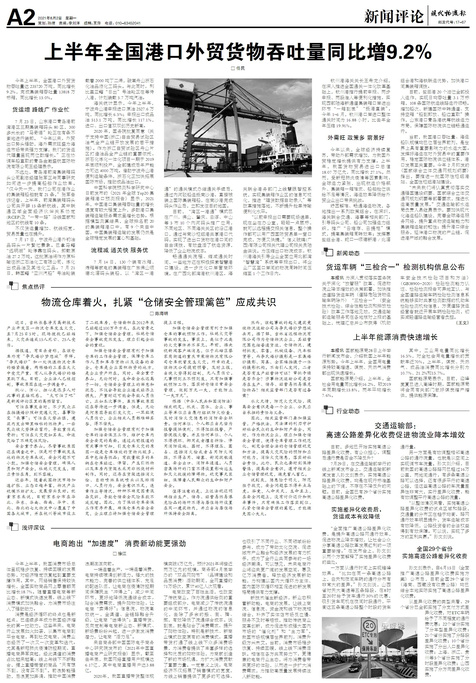 □任民 今年上半年,全国港口外贸货物吞吐量达235720万吨,同比增长9.2%,完成集装箱吞吐量13818万标箱,...
