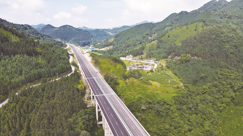 本报讯 不久前,国家发改委、交通运输部联合印发了《成渝地区双城经济圈综合交通运输发展规划》 (以下简称《规划》)。《规划》提出,要加快推动成渝地区双城经济圈综合交通运输体系高质量发展。成渝地区将构建高品质对外运输网络,2025年基本建成“轨道上的双城经济圈”。 图为四川省南向出川大通道叙永至威信高速公路建成通车。