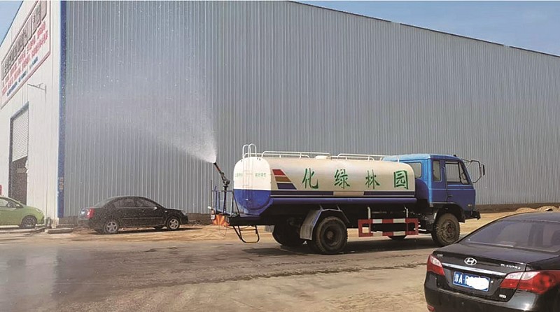 中通钢材市场方组织的消杀车辆正在园区内作业