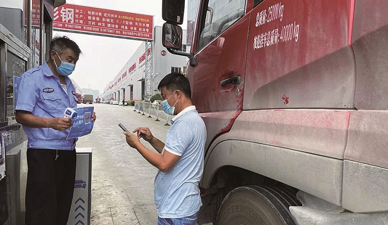 “市场上两个大门都进行进出管理了,只要进市场都要扫码测体温才能进,市场上有各公司的志愿者帮忙守护大门。”富源钢材市场管理办张扬告诉记者。
