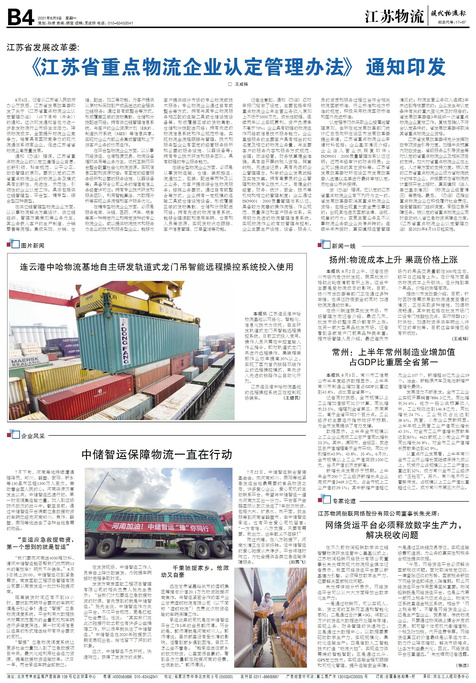 □ 王成祥 8月6日,记者从江苏省人民政府办公厅获悉,江苏省发展改革委印发了关于《江苏省重点物流企业...