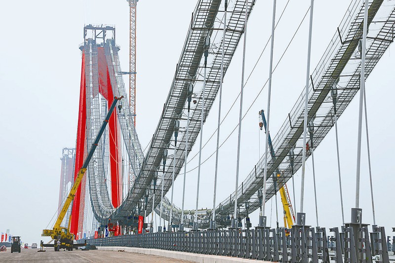 本报讯 日前,济南凤凰黄河大桥正在加紧施工。据了解,济南凤凰黄河大桥按照双向八车道一级公路标准建设,采用“公轨同层,轨道居中”的设计方案,计划今年10月建成通车。