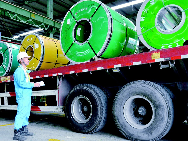 本报讯 九月伊始,作为国内重要不锈钢贸易加工基地的江苏省无锡市锡山区,克服钢铁材料价格上涨不利因素,把脉市场需求经络,为海内外工程及设备制造业配套相应的材料制品、半成品及成品。目前,钢铁产品除满足国内需求,还销往“一带一路”等国家和地区,助力当地工业经济发展。 图为9月1日,江苏省无锡市锡山区,一家钢铁加工贸易企业,工人正在吊运卷材产品发货。(杨木军)