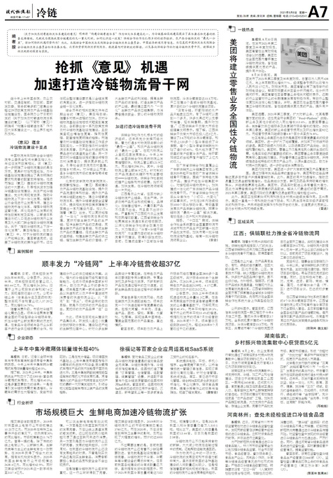 ■ 抢抓《意见》机遇加速打造冷链物流骨干网