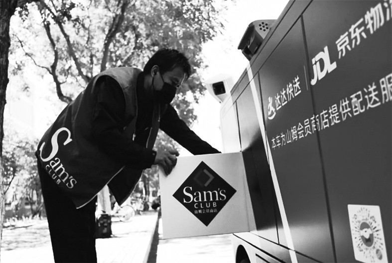 用户通过京东到家、山姆APP等平台下单,便可享受无人配送“小时达”服务体验。