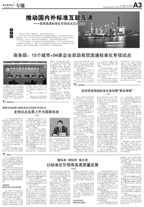□ 郭商 青岛作为全国首批商贸流通标准化试点城市之一,同时有5家企业、单位被列为试点企业和单位,在9月...