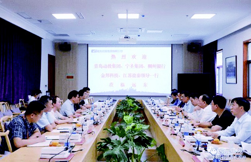本报讯 9月9日,青岛动车小镇投资集团董事长李兴新、锐安商业保理副总兼贸易公司负责人李文锐、锐安投资副部长刘琮,上海宁圣集团董事长刘伯党、副总经理杨超,浙江稠州银行总行行长助理宋卫军,福州分行行长郑明亮,杭州金邦数字科技有限公司杨苏旻,江苏盈泰供应链管理有限公司董事长王成、总裁周启方、副总裁周宏伟到访远东。远东控股集团创始人、董事局主席、党委书记蒋锡培出席接待并座谈。