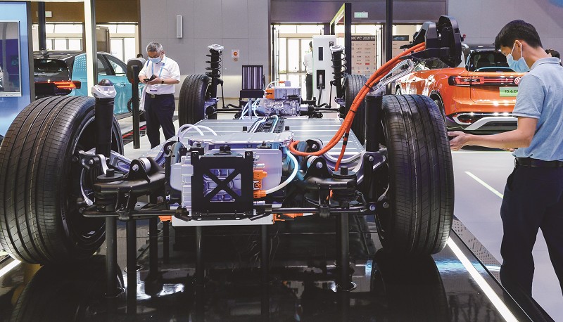 11场主题峰会则探讨新能源汽车在技术创新、产业创新、政策创新、跨界创新等方面的成功经验与发展趋势,探索电动化、智能化、共享化协同发展的有效路径,凝聚产业共识,推动汽车产业转型升级,助力实现碳中和。图为一名观众在参观大众汽车模块化电驱动平台。(详细内容见今日A3版)(周佳谊)