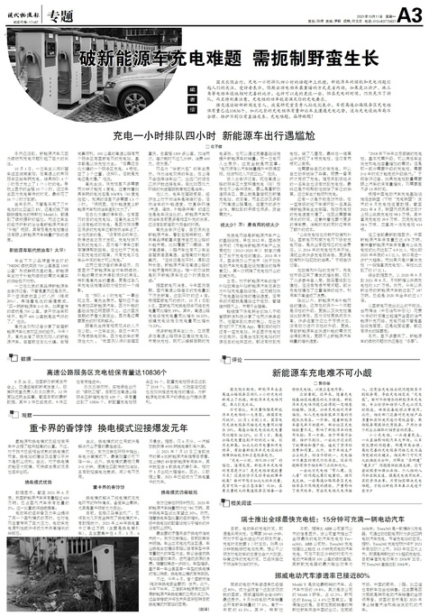 □郭存举 国庆假日期间,新能源车主在高速公路服务区排队4小时充电的新闻上了热搜。新能源车充电难问题,...