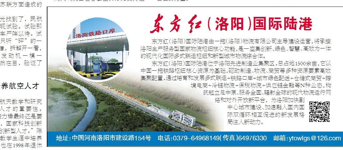 东方红(洛阳)国际陆港由一拖(洛阳)物流有限公司主导建设运营,将承接洛阳生产服务型国家物流枢纽核心功能,是一座集创新、绿色、智慧、高效为一体的现代化国际多式联运枢纽和新型城市物流综合体。