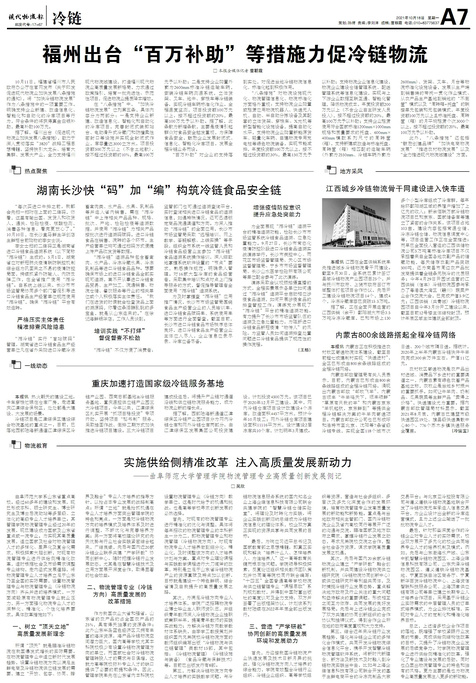 ■ 福州出台“百万补助”等措施力促冷链物流
