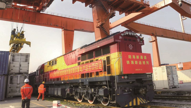 2017年西部陆海新通道铁海联运班列开行。截至目前,西部陆海新通道沿线站点已覆盖中国国内9省(区、市)29市62个车站,运输货品超过500类,辐射全球6大洲105个国家和地区的304个港口,形成“一带一路”经中国西部地区的完整环线。