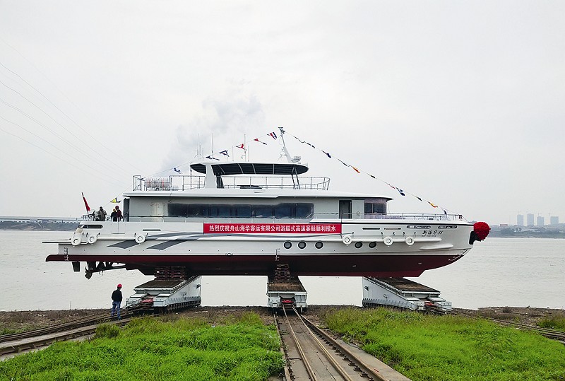 本报讯10月22日上午8时58分,湖南湘船重工有限公司为舟山海华客运有限公司建造的“新海华86”游艇式商务快艇在湖南长沙靖港湘江西岸顺利下水。