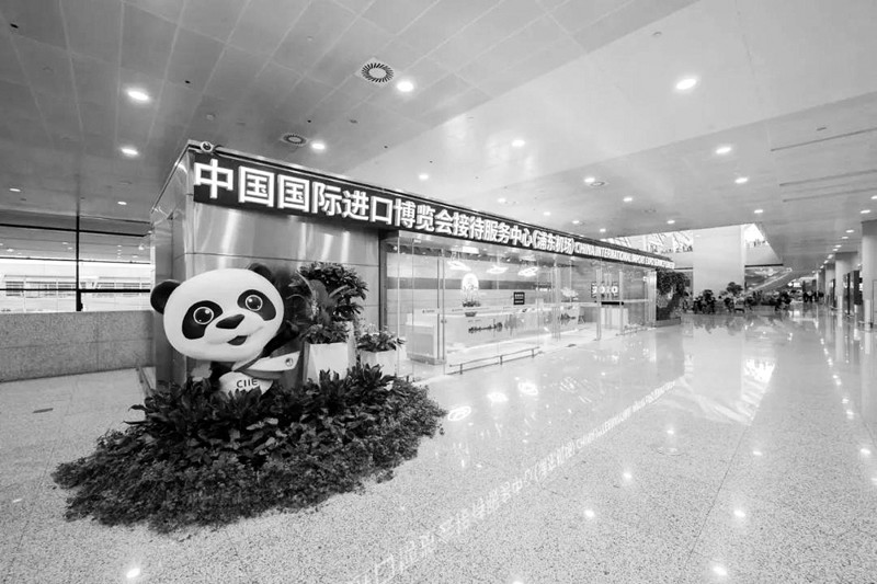 虹桥机场在两座航站楼精心打造了8组主题绿化景观,绿化景点则以进博会会标和“进宝”为元素,表达了“百花齐放迎进博”的创作寓意。位于虹桥和浦东两座机场到达区的4处进博会接待服务中心将于10月28日全新启用,训练有素的志愿者为参展人员提供英日韩等多种语言咨询服务,将进博会的“前台”延伸到了两大机场。接待中心还配备了《第三届中国国际进口博览会旅客服务指南》,以及免洗手消毒液等。