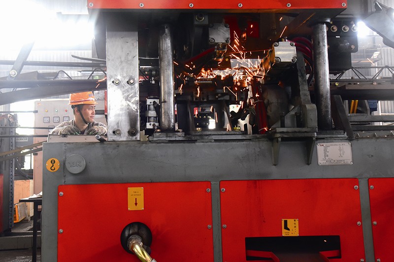 本报讯10月28日,位于安徽省马鞍山经开区的安徽马钢比亚西钢筋焊网有限公司员工在新生产线上焊接钢筋桁架产品,依靠新产品拓展市场、破除营销“坚冰”。