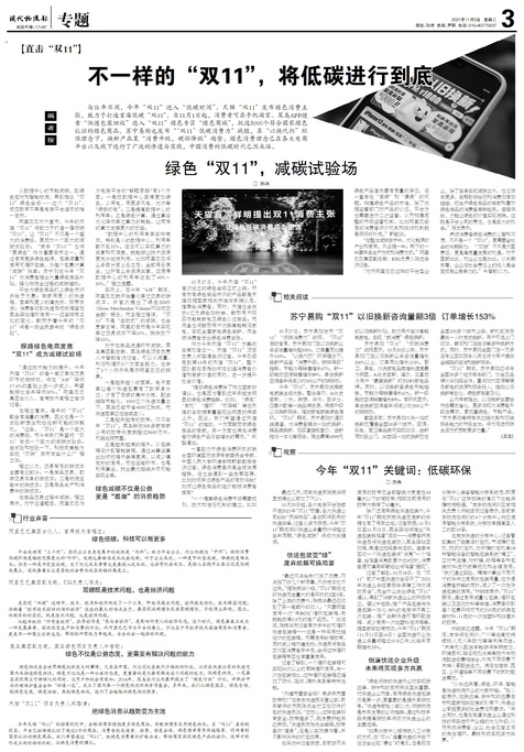 编者按 与往年不同,今年“双11”进入“低碳时间”。天猫“双11”发布绿色消费主张,致力于打造首届低碳“双11”...