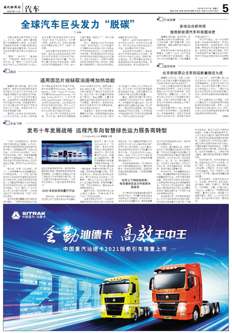 □刘畅 在第26届联合国气候变化大会上,沃尔沃、福特、通用、戴姆勒旗下的梅赛德斯—奔驰、比亚迪和印度塔...