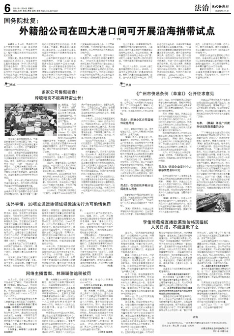 近日,广州市人大常委会发布公告,公开征求广大市民群众和社会各界对《广州市快递条例(草案)》的意见建议...