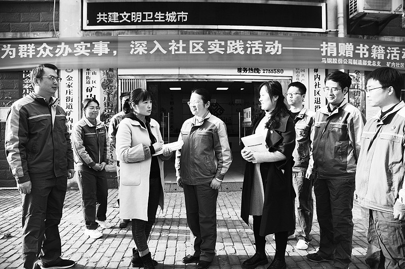 本报讯 (特约记者胡智慧通讯员吴玲摄影报道)12月9日下午,马钢制造部党总支委员许永梅带领综合党支部等3个党支部的青年党员专程来到金家庄街道矿内社区,将新购的《新时代高素质党员干部丛书》 《领导干部要讲政德》《新时代党员教育培训热点难点疑点精讲》等近60本、价值2000多元的党建书籍赠送给社区党员活动室,深入社区开展“我为群众办实事”实践活动。