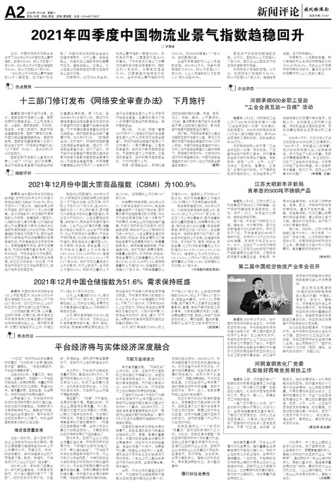 □乔雪峰 近日,中国物流与采购联合会发布了2021年12月份中国物流业景气指数,数据为52.6%,较11月回落1...