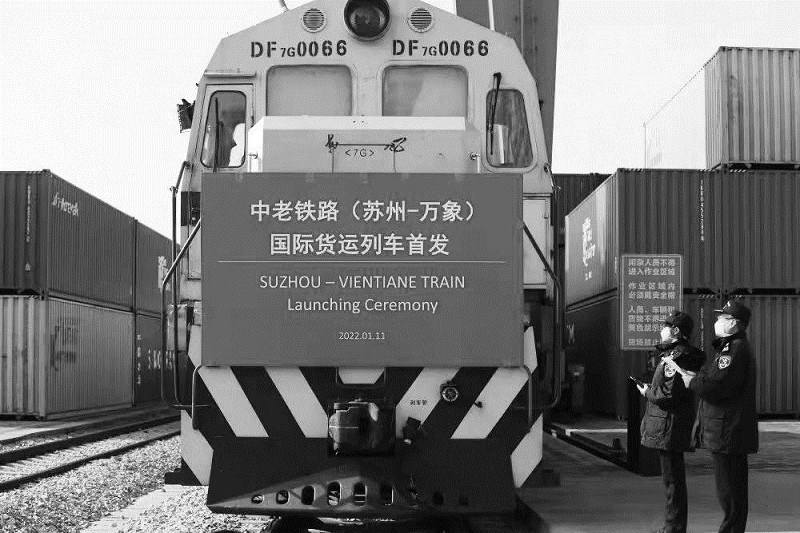 本报讯1月11日,一列满载液晶显示器、汽车零配件等货物的国际列车从江苏省苏州市出发,预计将于7天后抵达老挝万象。