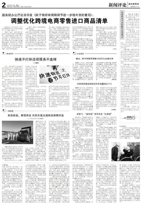 □吉蕾蕾 近日,多家快递企业相继宣布2022年春节不打烊,继续提供全年无休的快递服务。在疫情防控常态化...
