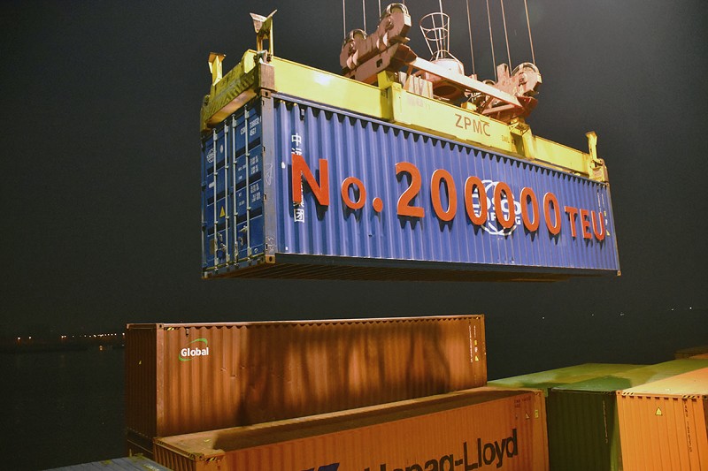 近日传来捷报,长沙集星码头1号泊位一个标注着“NO.200000TEU”的中远海集装箱,通过后方“远程操控”1号门机技术员和内集卡现场调度的配合下平稳吊装上“澳鑫号”船上。至此,长沙港年集装箱吞吐量首破20万标箱,创造了长沙港发展史上一个新的“里程碑”,标志着长沙港迈上全国内河支线港口领先地位。