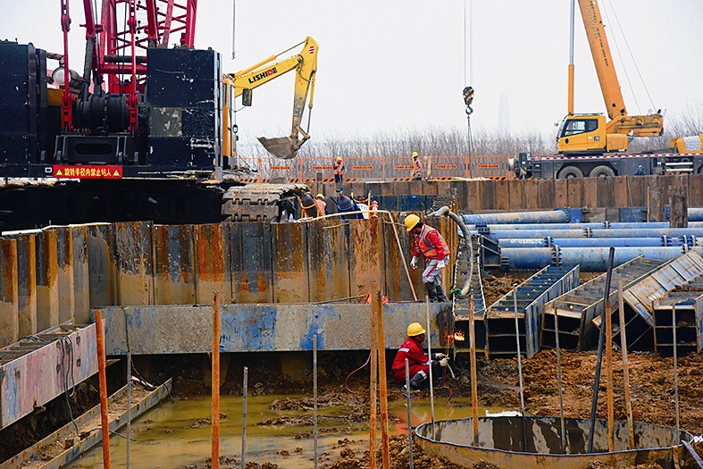 本报讯 1月20日,中铁四局巢马铁路CMSG-3标施工人员在安徽省马鞍山市长江东岸作业现场战寒风、保节点,推进交通重点工程进度。