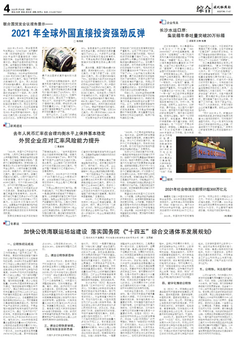 ■ 加快公铁海联运场站建设 落实国务院《“十四五”综合交通体系发展规划》