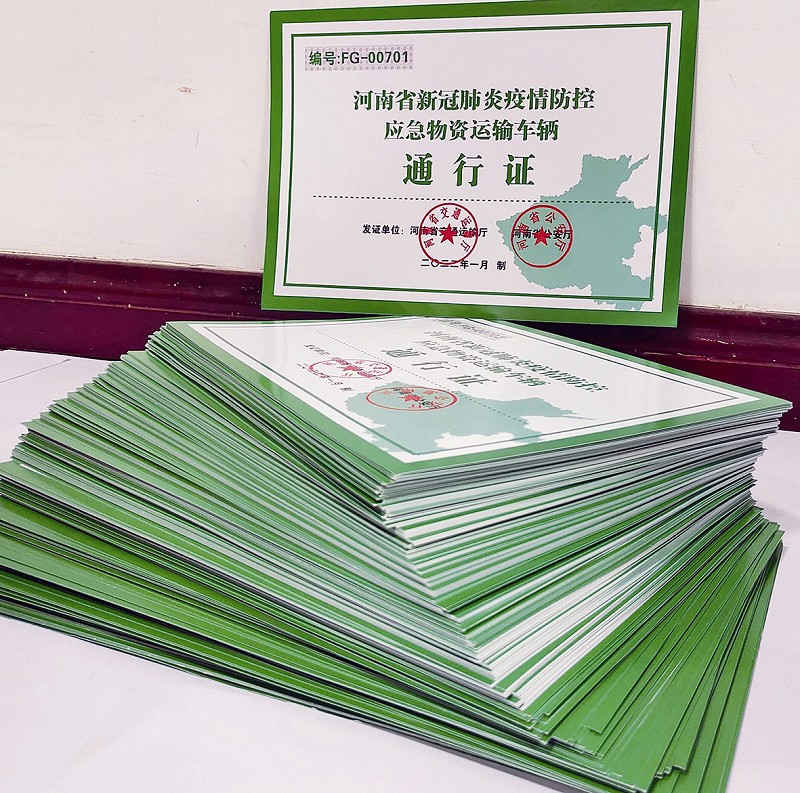在河南省发改委领导下,河南省物流与采购联合会第一时间向郑州、洛阳、许昌、安阳寄送了“新冠肺炎疫情防控应急物资运输车辆通行证”,先后为省内重点物流企业发放通行证7000张,确保了省内重点企业生产不“断粮”、民生保障不“断供”。