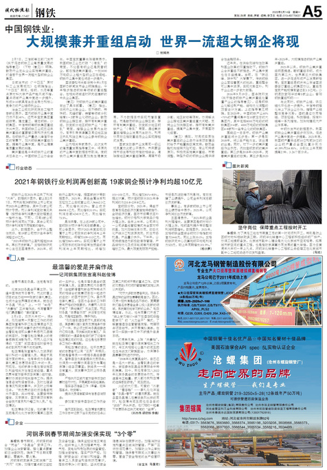 ■ 2021年钢铁行业利润再创新高19家钢企预计净利均超10亿元