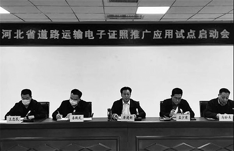 本报讯 2月14日,在河北省道路运输电子证照推广应用试点启动会上,来自石家庄市的道路运输驾驶员刘磊成功申领了自己的从业资格电子证照。这是河北省第一张交通运输行业电子证照,标志着河北省交通“放管服”改革又有新进步。河北省交通运输厅副厅长唐建新出席启动会。
