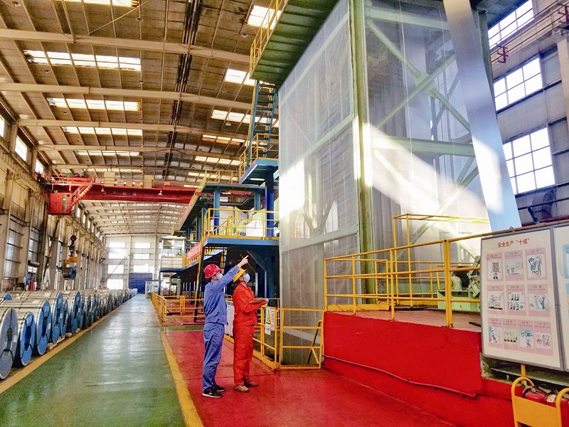 本报讯河钢衡板以满足高端客户需求为出发点,在推进市场驱动、客户端优化的基础上,全面推动技术升级,针对平整机、镀锡等重要设备进行升级改造,有效提高带钢表面洁净度和硬度等性能指标。元月份以来,该部食品级马口铁一级品率同比提高0.12%。 图为河钢衡板技术人员正在探讨镀锡设备改造方案。(牛万强摄影报道)