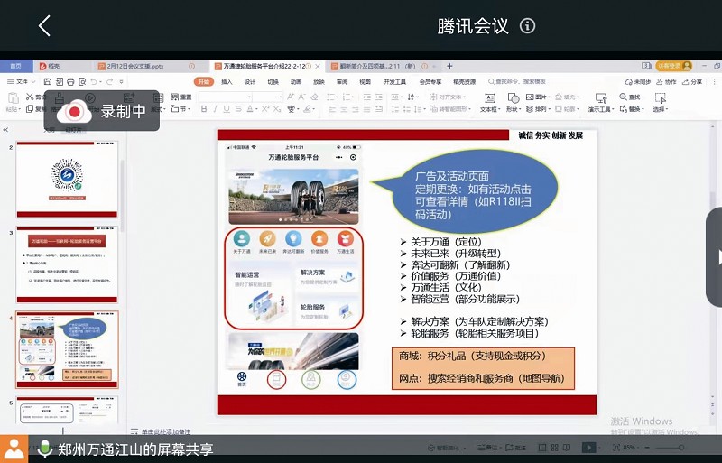 兵马未动粮草先行。郑州万通汽车轮胎股份有限公司网络部副总陈守旭宣布了市场支持政策,同时对相关实施方案进行了陈述和探讨。记者通过腾讯会议室观察到,本次网络会议约有170多人参加,整个时长约100分钟左右。