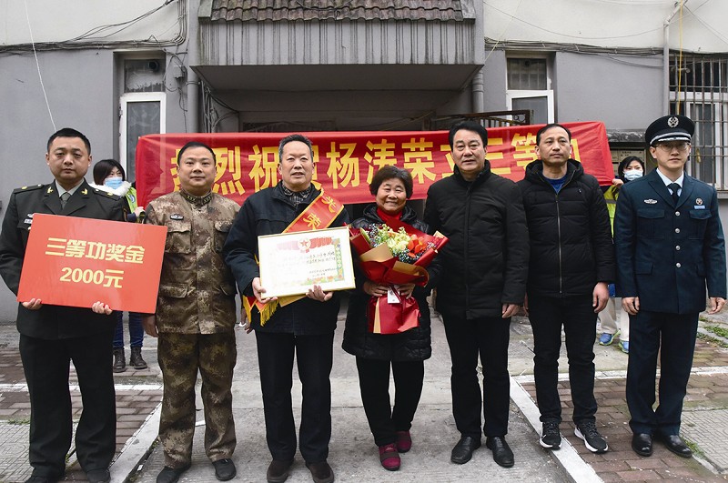 本报讯2月22日,安徽省马鞍山市花山区人民武装部政委檀智、区退役军人事务局局长王金华带队来到东苑小区,给军属杨建民送上立功喜报、鲜花和2000元慰问金。 据了解,原马钢退休职工杨建民、安秀美关心支持国防事业建设,鼓励儿子杨涛在部队安心服役、建功立业。2021年,在陆军装甲兵学院蚌埠校区任教授的杨涛工作成绩突出,被评为“四有”优秀军官并获得“三等功”奖励。(胡智慧夏小芳)