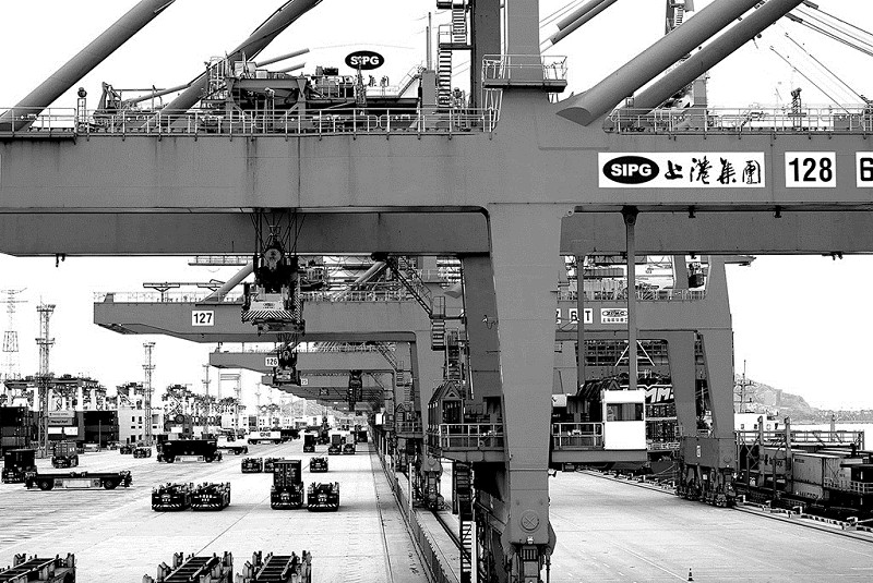 本报讯中远海运集团推进区块链技术在航运业的应用,牵头打造了行业区块链联盟“全球航运商业网络(GSBN)”,目前,这一平台已经推出“无纸化放货”,将进口货物单证手续办理完成时间从24至48个小时缩短到4个小时以内。上海港和中远海运集团已经通过港口建设合作加快全球化布局。图为上海洋山港四期自动化码头。(杨有宗)
