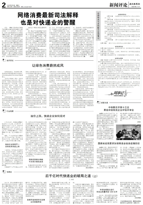 本周领导动态 3月14日 《全国第四批网络货运平台A级企业名单公 示》公布。 3月15日 中国物流与采...