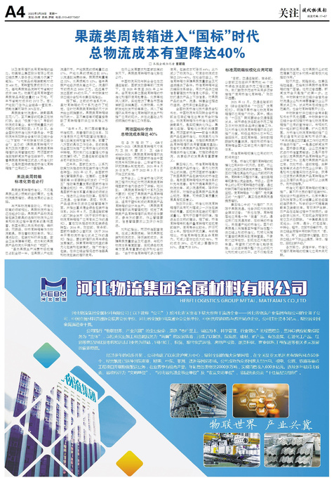 ■ 果蔬类周转箱进入“国标”时代总物流成本有望降达40%