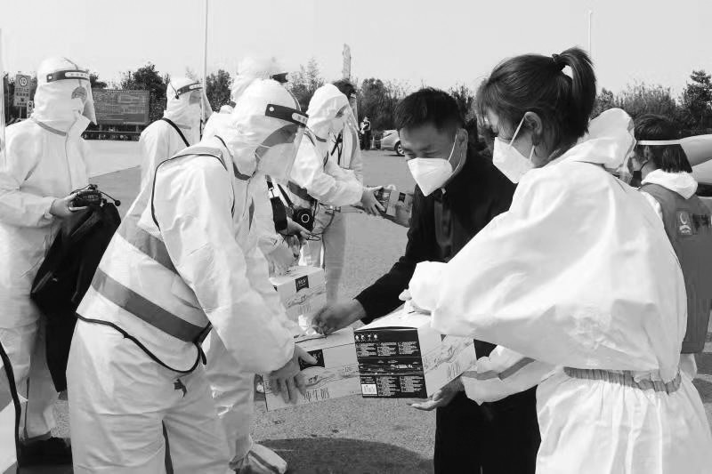 本报讯 4月4日下午,蒙牛乳业马鞍山有限公司人员来到G4221沪武高速公路采石矶出入口卡点,将500盒牛奶饮品分发给坚守在一线的防疫人员,感谢他们为守护“平安家园”付出的辛勤努力。 (胡智慧姚杰超)