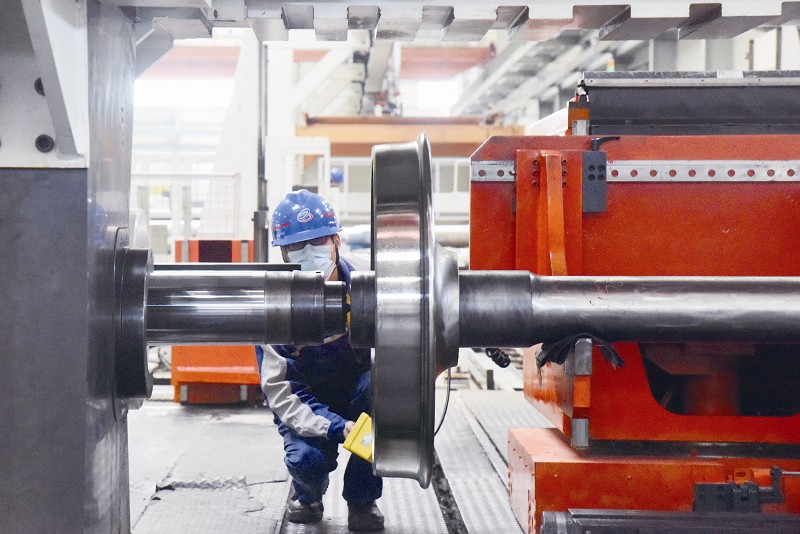 本报讯今年一季度,宝武集团马钢轨交材料科技有限公司通过加强生产经营管理和科技攻关,积极消化疫情带来的不利影响,巩固国际市场份额。实现交材海外出口占比超40%,国际化指数位于中国宝武各子公司前列。图为4月7日,该公司职工在精心检验出口韩国、法国等地区的车轴、轮对产品。(胡智慧许然摄影报道)