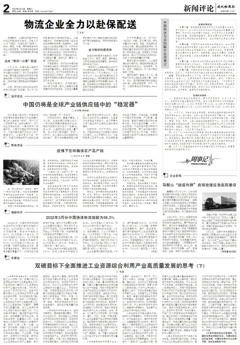 2022年3月,中国物流与采购联合会发布的中国快递物流指数为98.3%,比2月回落2.1个百分点。从分项指数看,商...