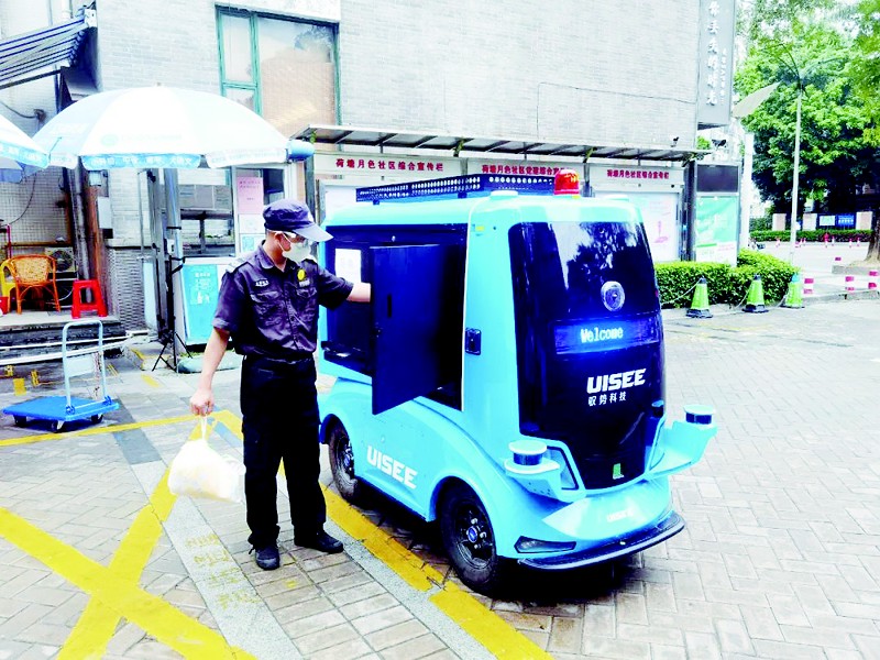 无人配送车将在配餐时段为社区居民进行餐饮配送,非配餐时段进行防疫物资配送,实现分时复用,分担社区工作者的压力,让居民可以及时领取到急需的物资。