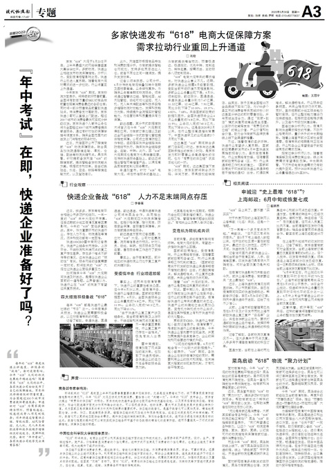 ■ 多家快递发布“618”电商大促保障方案 需求拉动行业重回上升通道