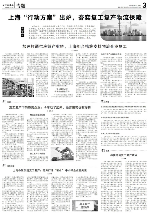■ 上海“行动方案”出炉,夯实复工复产物流保障