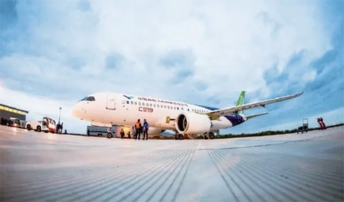 近日,编号为B—001J的C919飞机从上海浦东机场起飞,并在3小时后安全着陆。这标志着商飞公司即将交付的第一架国产大飞机C919首次飞行试验圆满完成。