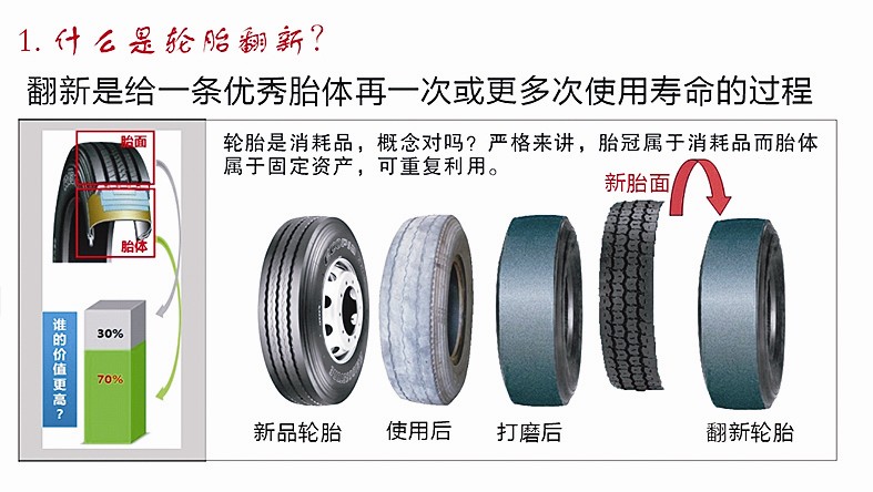 没错,就是车辆轮胎使用到一定程度,在普通轮胎需要更换的节点,却早有品牌的轮胎可以实现翻新继续使用,并成为轮胎业的翘楚。