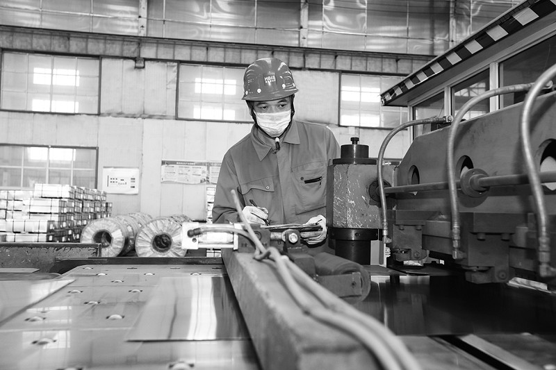 本报讯 (通讯员刘玉红摄影报道)6月29日,河钢衡板横剪生产线员工正在记录食品级镀锡产品的性能参数信息。 今年以来,河钢衡板将产品定位于高端市场,积极调整产品结构,并以食品级镀锡板提量上档为目标,确立了湿平整工艺技术开发、DR材产品开发、高端饮料罐专用镀锡板开发、电池壳产品开发等20余项产品技术攻关课题,全力推进高端产品的工艺标准化和流程化。上半年,食品级镀锡产品订单量完成8.05万吨,创历史最好水平。
