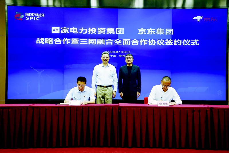 本报讯7月6日,京东集团与国家电投战略合作协议签约仪式在京举行。国家电投董事长、党组书记钱智民,党组成员、副总经理徐树彪,京东集团CEO徐雷,京东科技CEO李娅云等出席仪式并见证签约,徐树彪、京东集团执行副总裁王培暖代表双方签署战略合作框架协议,双方有关负责人签署具体合作协议及项目合同。